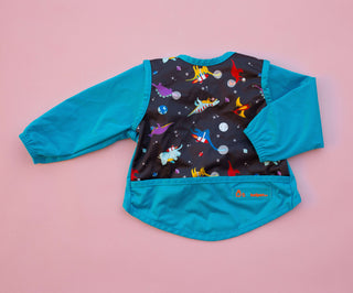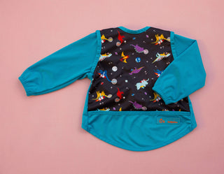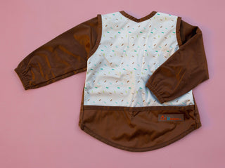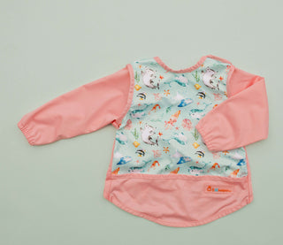The Smocket combines a bib and smock with a crumb-catching pocket, perfect for mealtimes and messy play. A must-have for your little one!