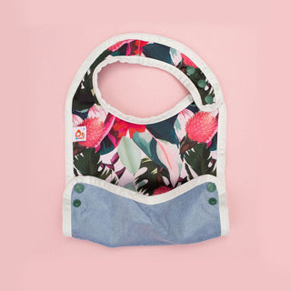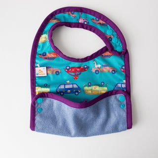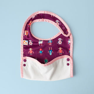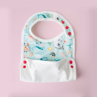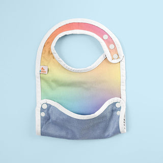 Our recommendation? Start with a Biggie Bib. These bad boys have adjustable necks, easy snap pockets, a wipeable PUL on one side and super soft absorbent bamboo on the other. They are a great first option to let you try multiple features all at once, then build your bib stash based on what your priorities are!