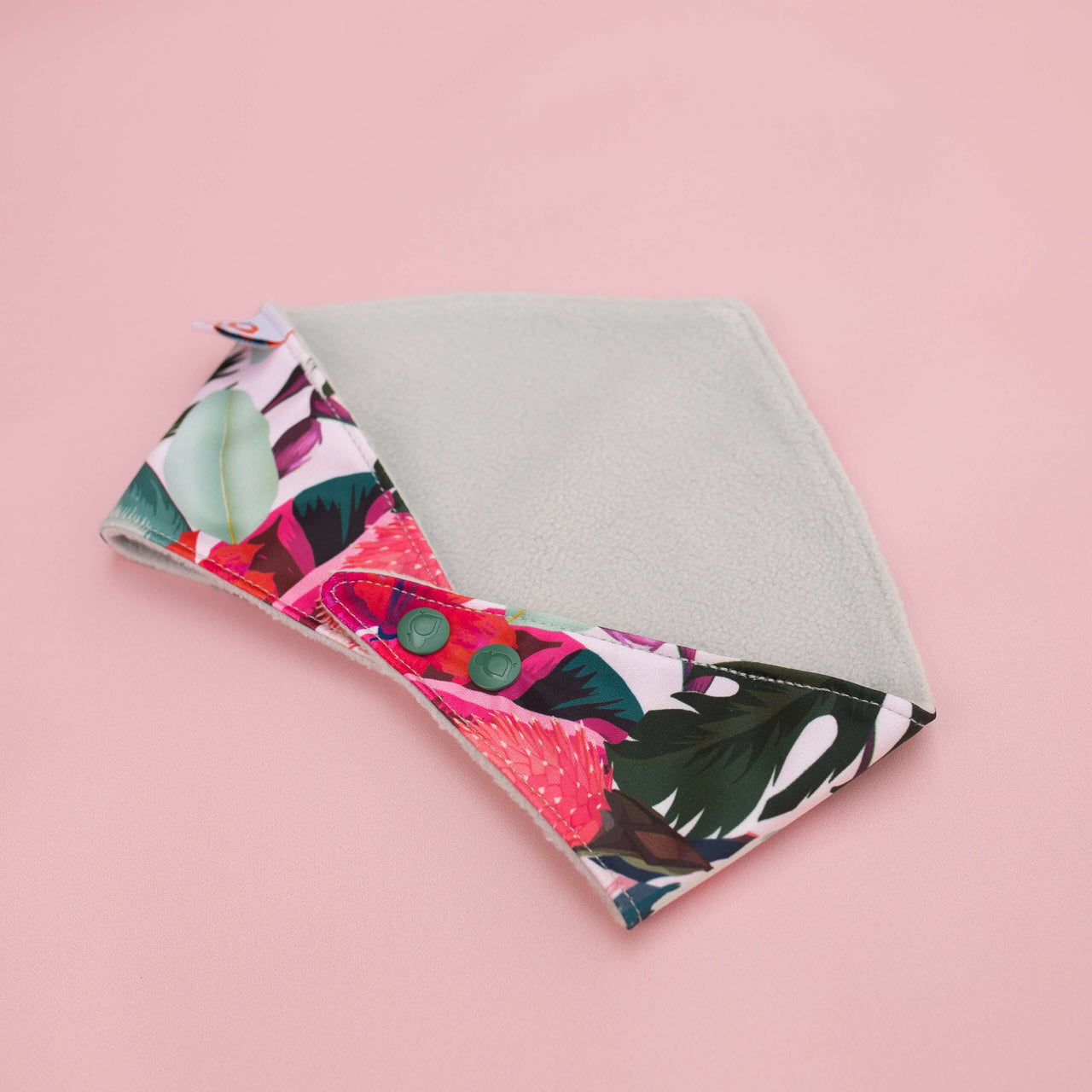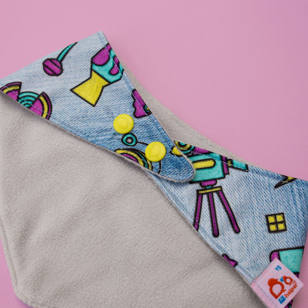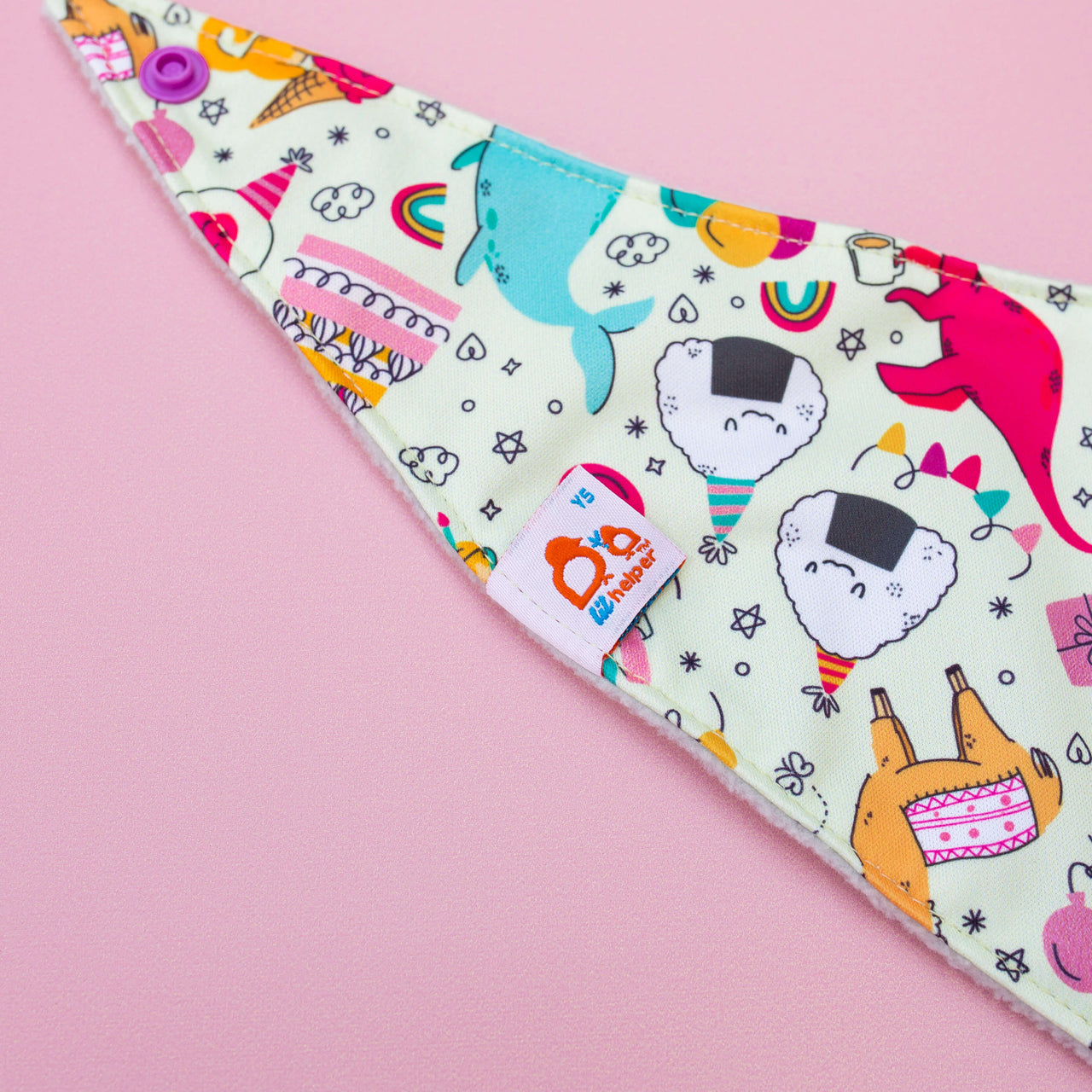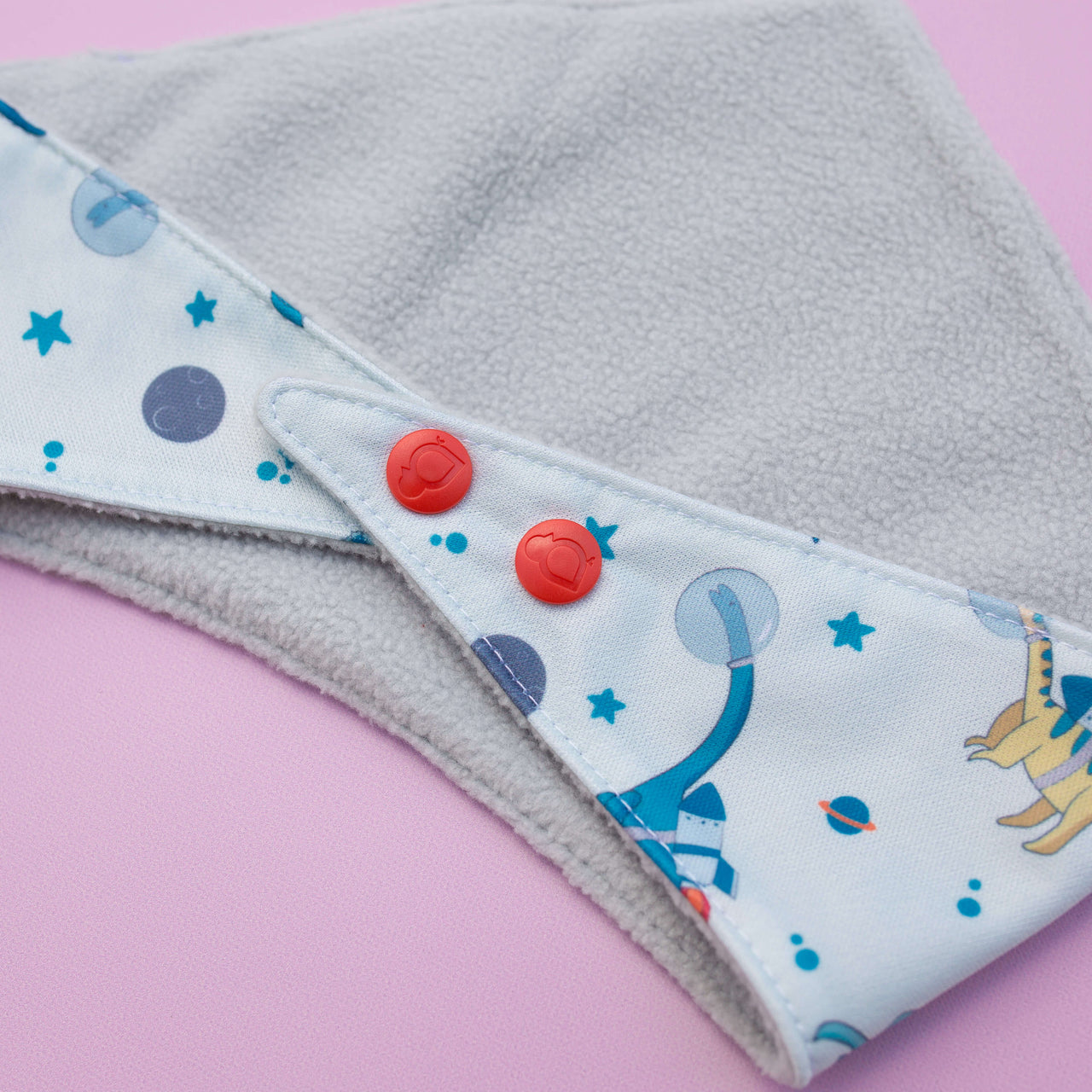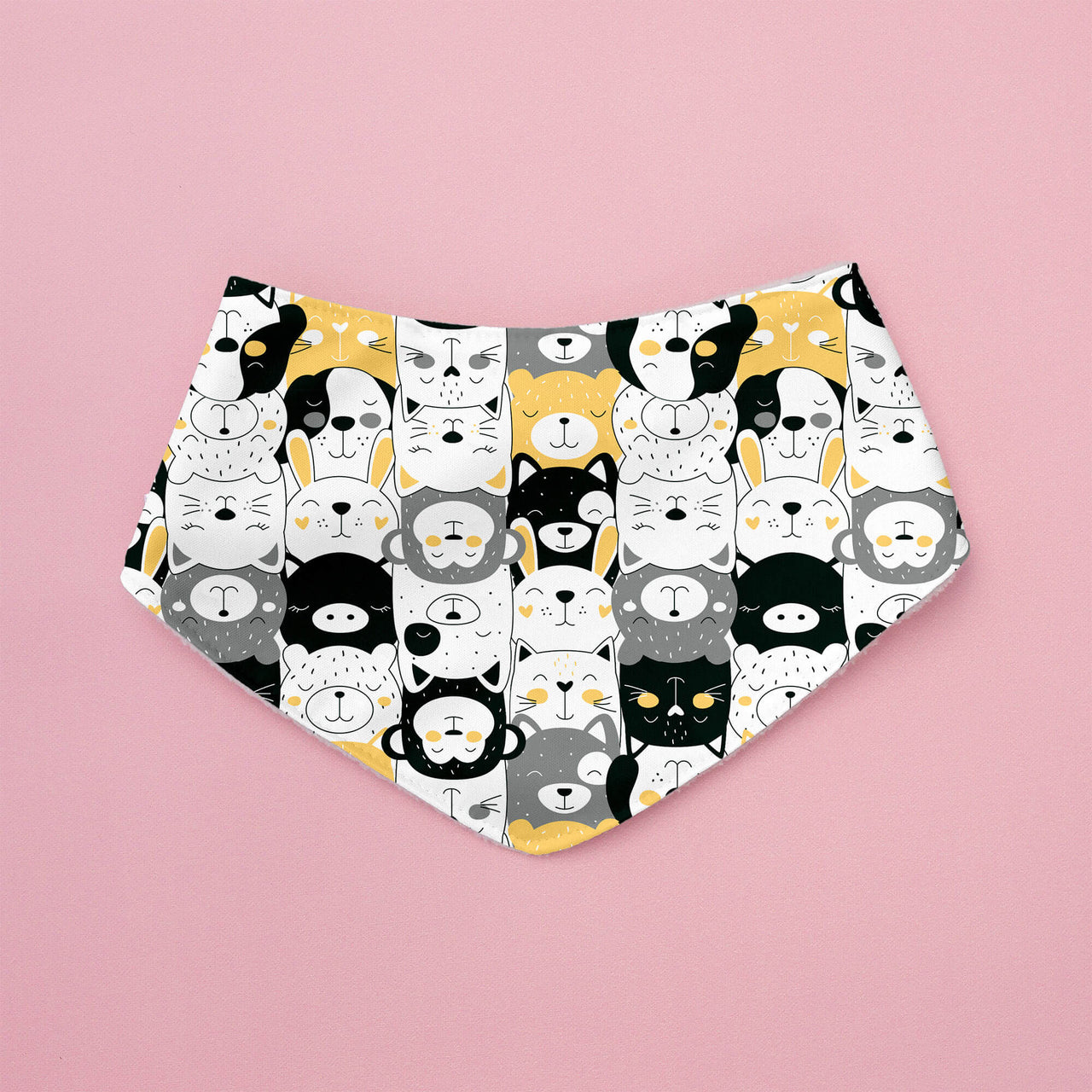The Reversible Bandana Bib is designed for ultimate functionality. One side features soft fleece for absorbency, while the other is made from PUL for easy wipe-downs. It comes with adjustable snaps to grow with your baby and is safe for teething. Ideal for both babies and pets, this bib ensures dryness and convenience. Double the functionality, double the cuteness!