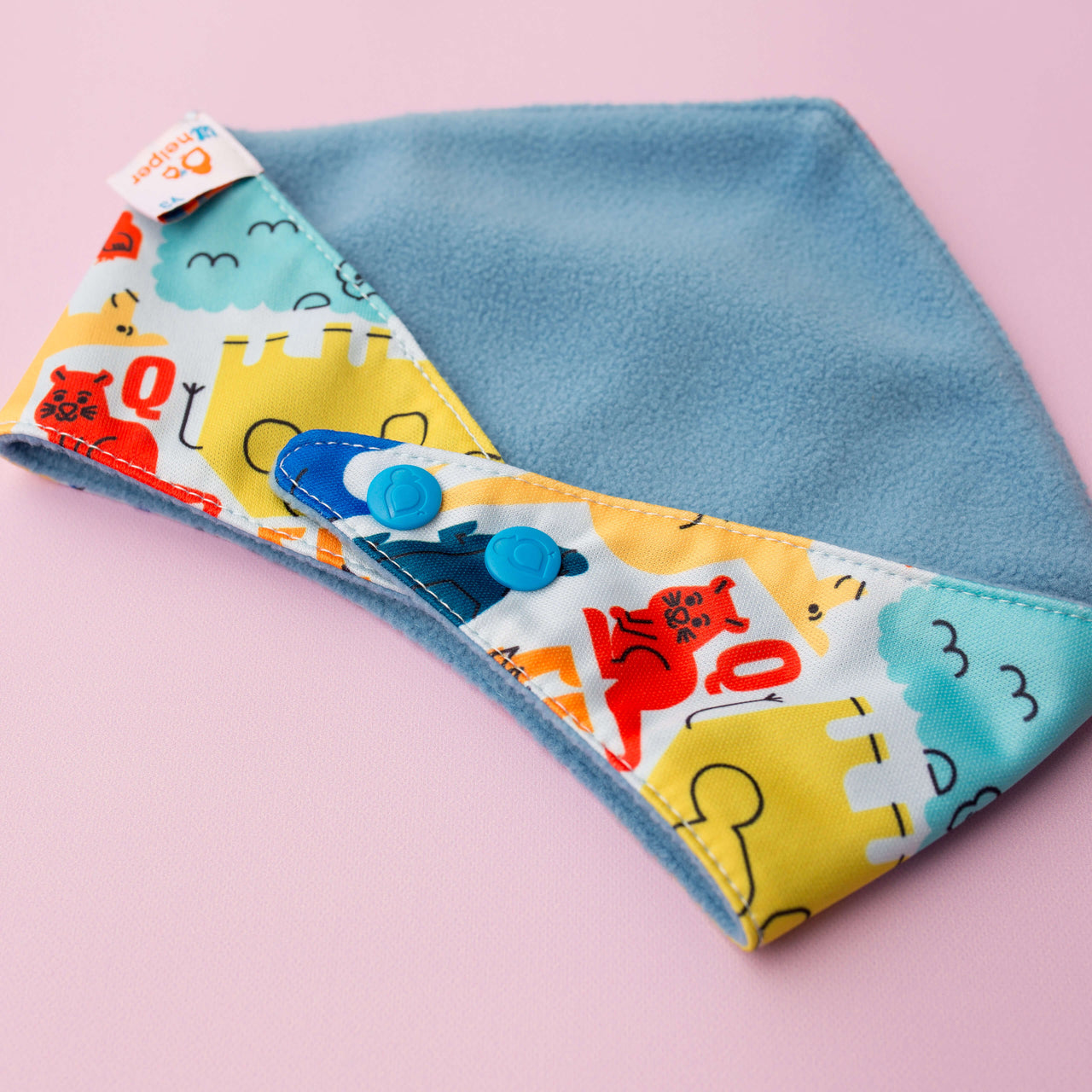 Just flip it! Both sides are fully functional — fleece side for drool absorption, PUL side for easy wipe-downs. It’s like having two bibs in one.