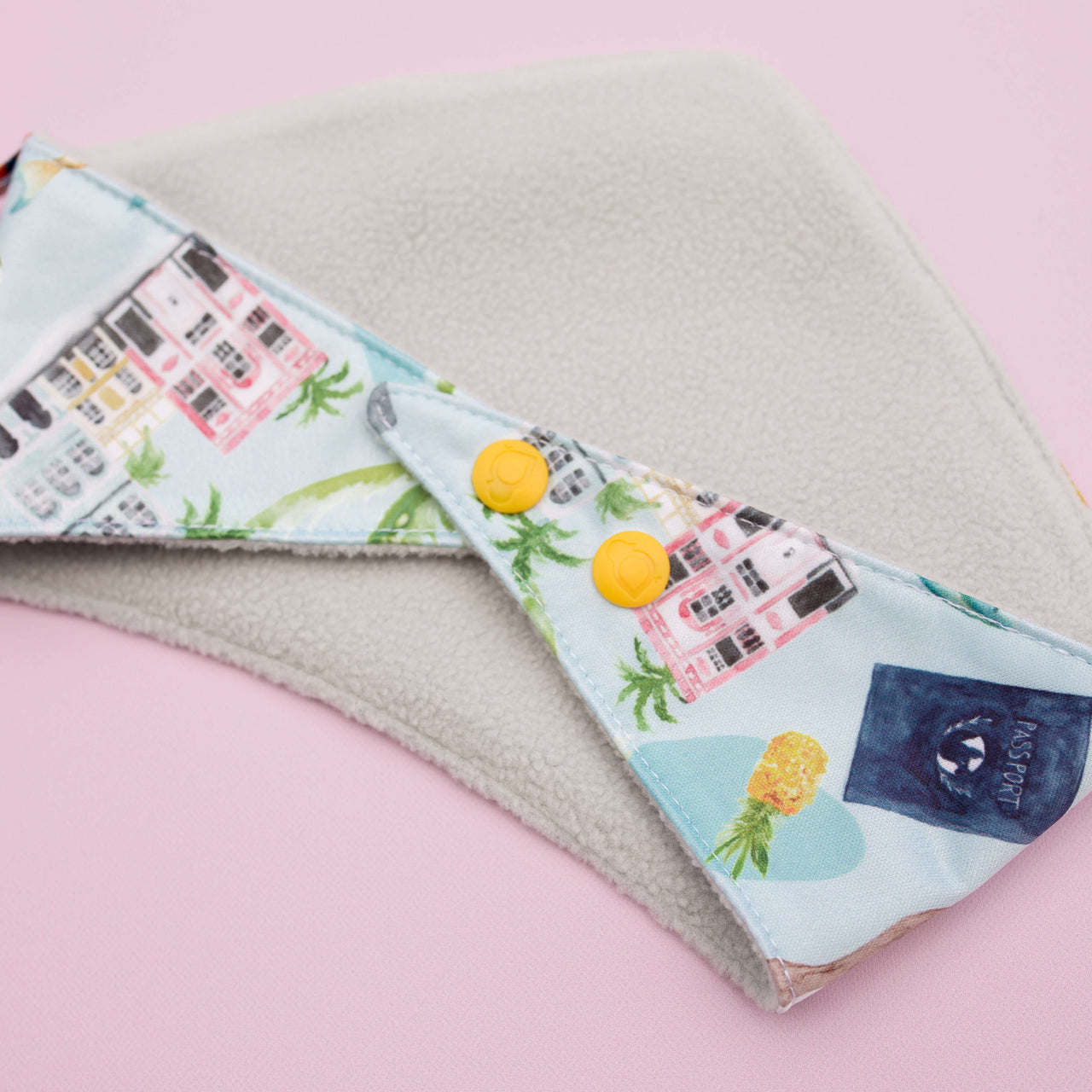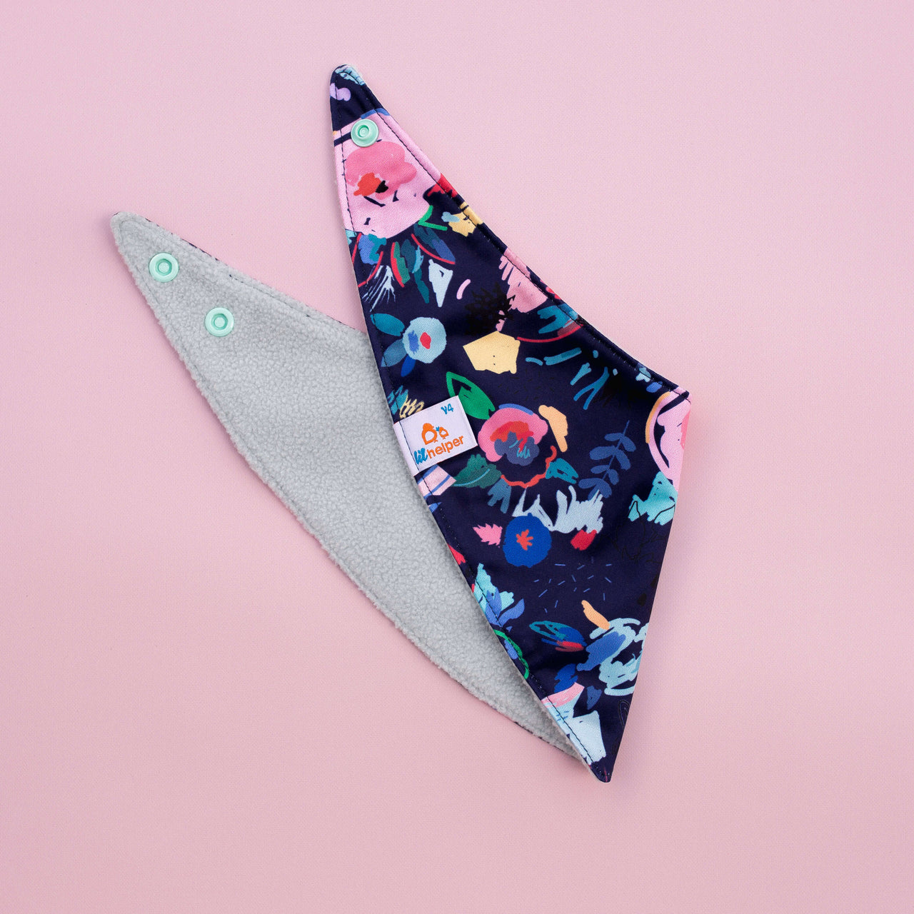 Soft fleece on one side for drool, waterproof PUL on the other for messes. Flip it, wipe it, repeat—two bibs in one stylish package.