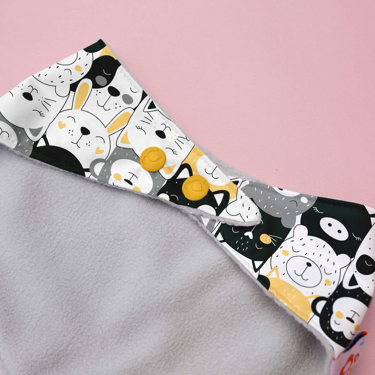 Machine wash on cold or warm and hang to dry. You can tumble dry on low for up to 20 minutes if you’re in a rush. Avoid hot water or high heat to keep the PUL layer in top shape.
