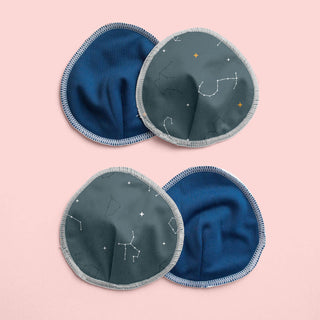 Both Regular and Overnight Breast Pads feature the same ultra-absorbent design, but the Overnight version is a bit larger and more absorbent—perfect for heavier leaks or nighttime use. Regular pads use a discreet white PUL to stay invisible under clothing, while Overnight pads come in fun prints to brighten your routine.
