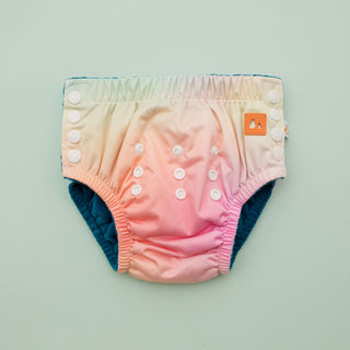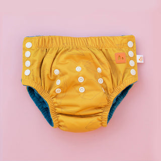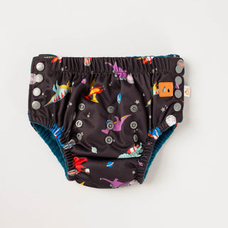 Reusable swim diaper for kids 10-45 lbs. Snug fit, solid containment, adorable prints, and durable snaps for comfy, secure, and stylish water adventures