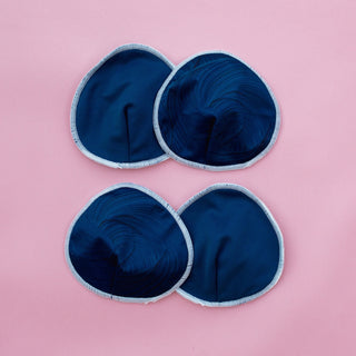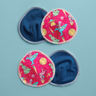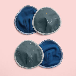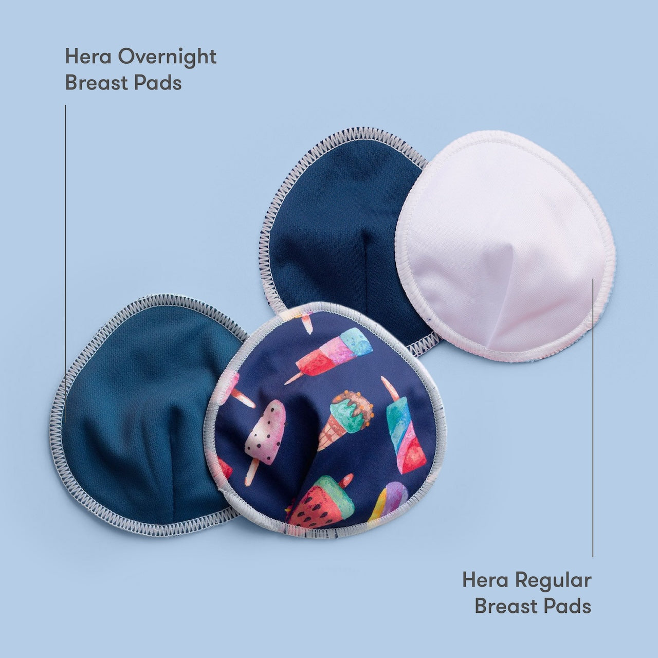 Both Regular and Overnight Breast Pads feature the same ultra-absorbent design, but the Overnight version is a bit larger and more absorbent—perfect for heavier leaks or nighttime use. Regular pads use a discreet white PUL to stay invisible under clothing, while Overnight pads come in fun prints to brighten your routine.