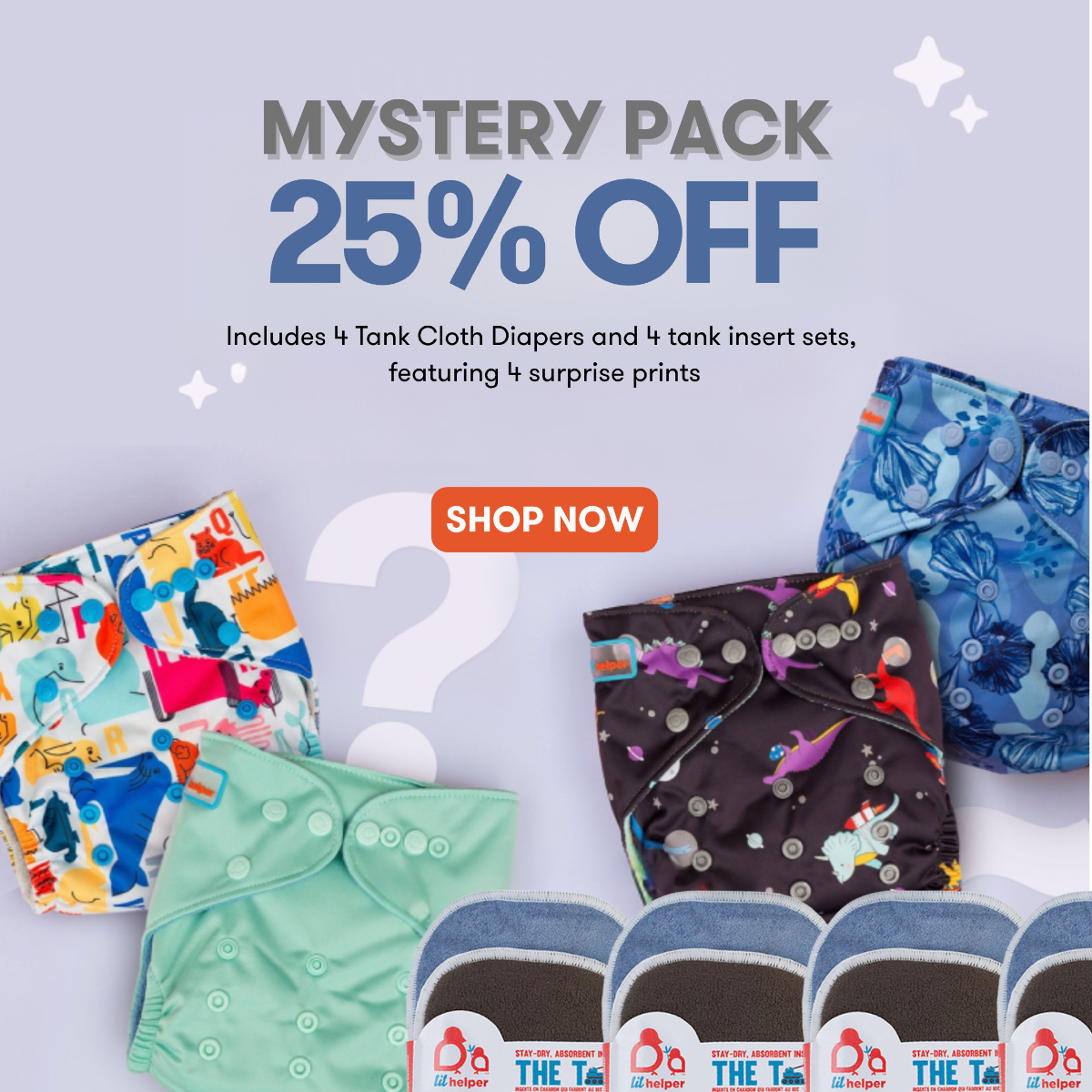 If you can snap a onesie, you can use a Lil Helper. The Tank’s one-size design fits from newborn to toddler with guide snaps to make perfect fit a no-brainer. There’s no stuffing or prepping—just snap the inserts in, put it on, and go. When it’s time to wash, rinse solids, toss it in the machine, and either hang or tumble dry. Easy on you, gentle on your kiddo, kind to the planet.